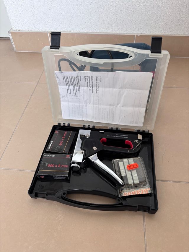 Detalles del productoSe vende grapadora profesional en su maletín, ideal para trabajos exigentes. Incluye varias cajas de grapas.