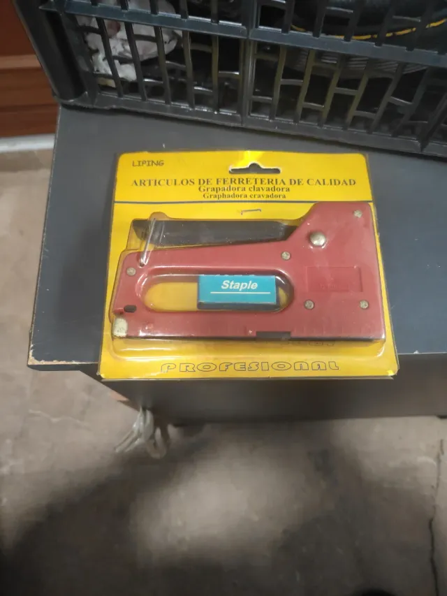 Grapadora de ferretería de calidad marca LIPING. - Color rojo. - Incluye caja de grapas. - Modelo profesional.