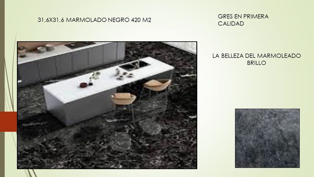 Baldosas de gres en color negro con acabado marmolado y brillo. - Medidas: 31,6x31,6 cm. - Primera calidad. - Diseño elegante y moderno.