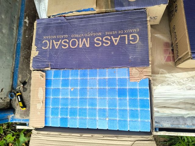 Detalles del productoSe venden lotes de gresite azul para piscinas o decoración. Cada caja contiene 20 piezas.