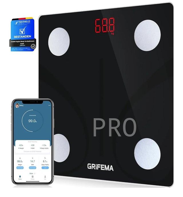 Detalles del productoPRECIO ONLINE : 19,39€ ESTADO : COMO NUEVO DEFECTO : LEVE USO LOCALIZACIÓN K - T.P9.E5.F4 COD : 53881 GRIFEMA, GA2001 Bascula de Baño Digital Grasa Corporal, Bluetooth Inteligente con Aplicación MovingLife, 13 funciones de monitoreo corporal, Máximo 150kg, Negro