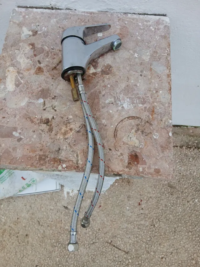 Grifo monomando para lavabo, con acabado cromado. - Incluye latiguillos de conexión. - Diseño moderno y funcional.