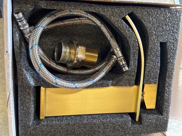 Grifo de baño tipo cascada en acabado dorado. Ideal para darle un toque moderno a tu lavabo. Esta usado - Diseño elegante.