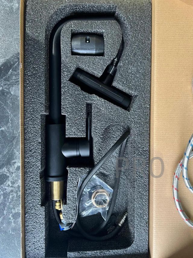 Detalles del productoGrifo de cocina negro con caño extraíble y 4 modos de salida: ahorro, presión, antisalpicaduras y cascada. Giro 360°, moderno y funcional.