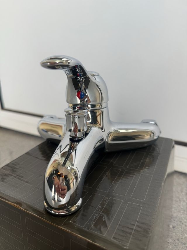 Grifo de ducha con acabado cromado brillante. Diseño moderno y funcional. - Cuerpo principal de latón. - Palanca de control de temperatura. - Conexiones estándar.