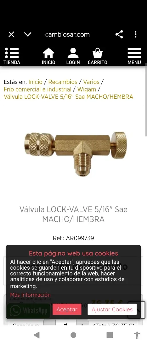 Grifo para botellas de gas, con conexión SAE de 5/16. - Válvula LOCK-VALVE. - Conexión macho/hembra.