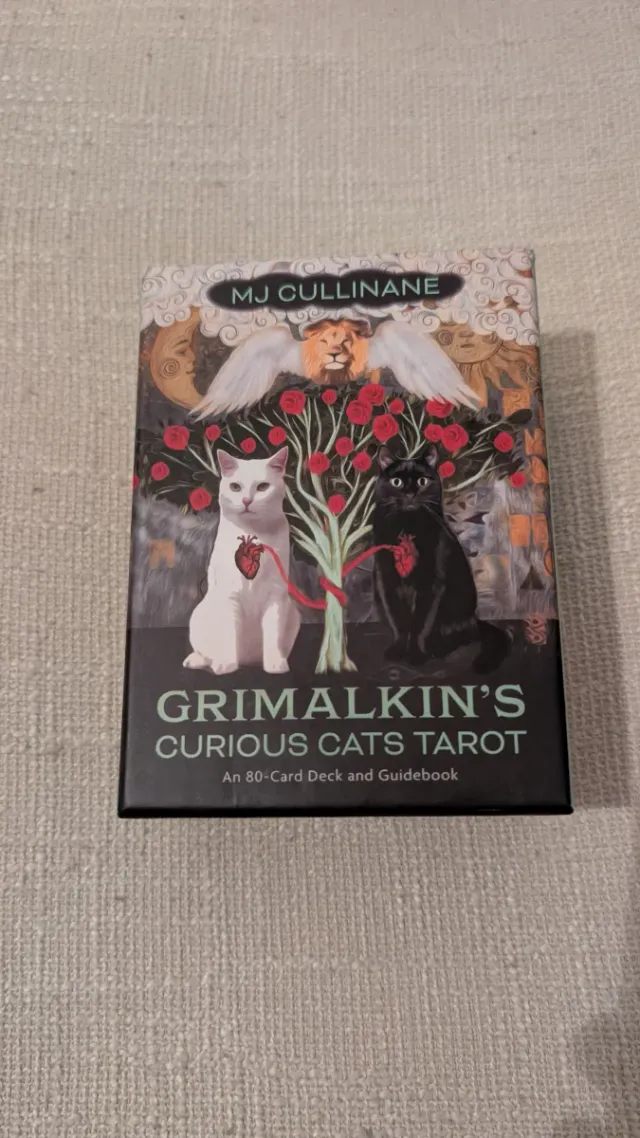 Baraja de tarot Grimalkin's Curious Cats con 80 cartas. - Incluye mazo de 80 cartas. - Viene con un libro guía.