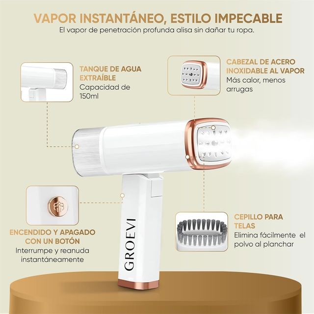 Groevi© Plancha Vertical Vapor 1200W ,Plancha de Viaje Plancha Ropa Portátil y compacta Vapor Rápido para Varios Tejidos Cepillo De Vapor Steamer