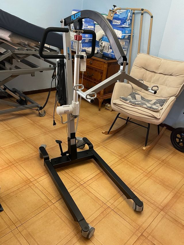 Se vende grúa eléctrica para traslado y movimiento de una persona con movilidad reducida. Incluye arnés de tela. Poco uso, está en muy buen estado No se hacen envíos, solo entrega en mano