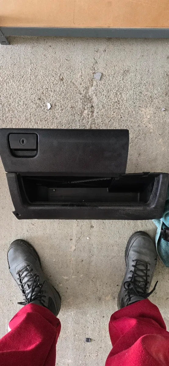 Guantera para BMW E36 Compact. Pieza de plástico negro. - Con cerradura y llave. - Interior con compartimento.