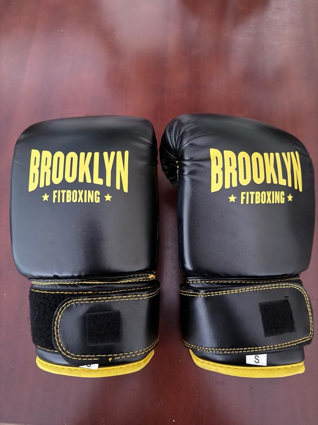 Par de guantes de boxeo marca Brooklyn. - Color negro con detalles en amarillo. - Cierre de velcro. - Talla S.