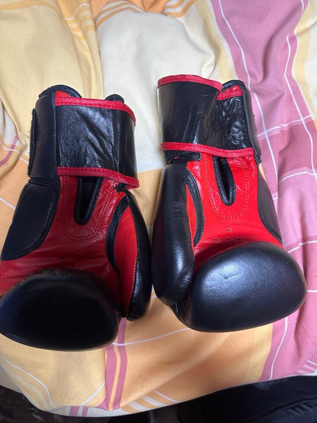 Guantes de boxeo Daito en color negro y rojo. Han sido usados muy pocas veces. - Diseño en cuero. - Cierre de velcro.