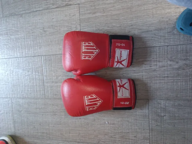 Par de guantes de boxeo de la marca Elite. - Color rojo. - Tamaño 10 OZ.