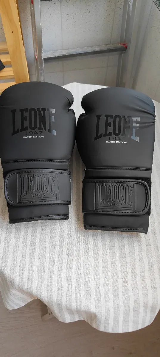 Par de guantes de boxeo Leone 1947. - Modelo Black Edition. - Cierre de velcro. - Logo de Leone 1947 en relieve.