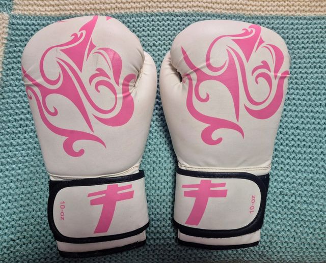 Detalles del productoGuantes de boxeo de mujer de color blanco con tribales rosas.