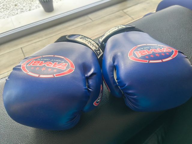 Vendo guantes boxeo niño con solo cinco usos están impolutos color azul,talla 80z,marca farabi, regalo cintas de muñeca.
