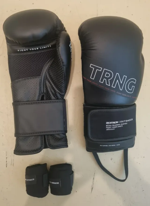 Detalles del productoPar de guantes de boxeo TRNG de Decathlon, modelo Outshock BC120.
