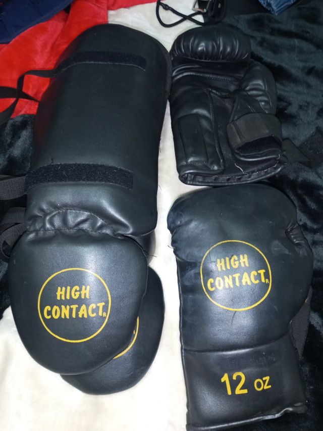 Vendo guantes 12 onzas y espinilleras (adulto), ideal para Muay Thai, kickboxing, etc Con uso pero en perfecto estado.