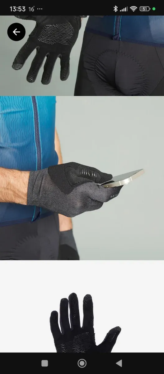 Guantes de ciclismo en color negro. Diseñados para ofrecer comodidad y agarre. - Tejido transpirable. - Palma con detalles de silicona para mejor agarre.