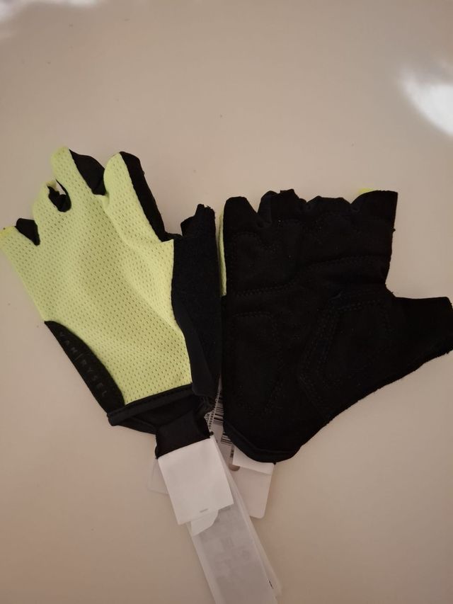 Guantes de ciclismo sin dedos de la marca Van Rysel. - Color amarillo neón y negro. - Tejido de malla transpirable. - Cierre de velcro en la muñeca.