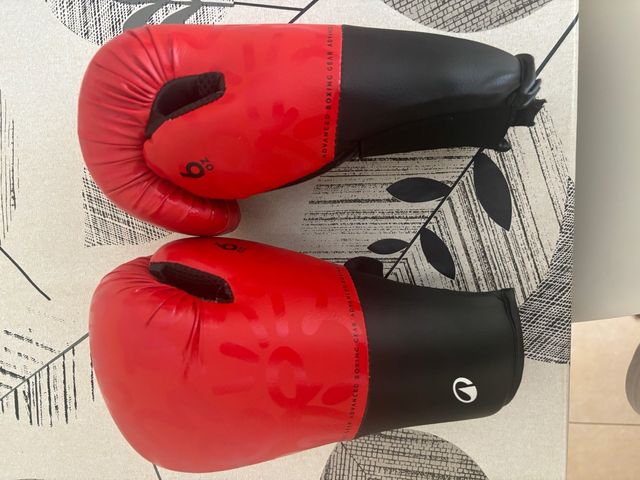 Par de guantes de boxeo de 6 onzas, ideales para entrenamiento. - Color rojo y negro. - Marca G.