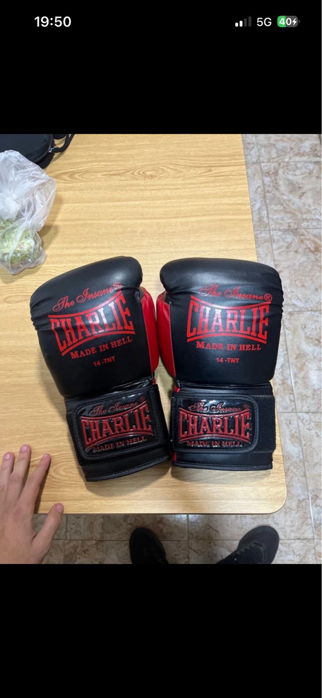 Detalles del productoPar de guantes de boxeo de la marca Charlie.Tiene un pequeño corte dentro del guante pero no influye ni molesta en nada