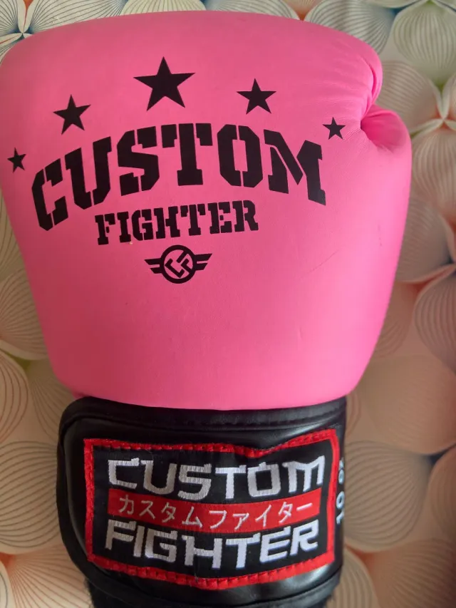 Detalles del productoGuantes de boxeo de color rosa con diseño de estrellas y el logo Custom Fighter.
