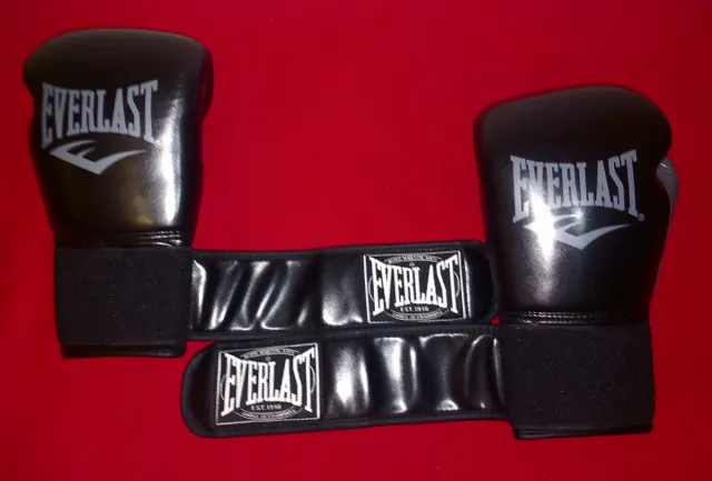 Par de guantes de boxeo de la marca Everlast en color negro. Incluyen vendas. - Cierre de velcro. - Diseño clásico de Everlast. - 12oz