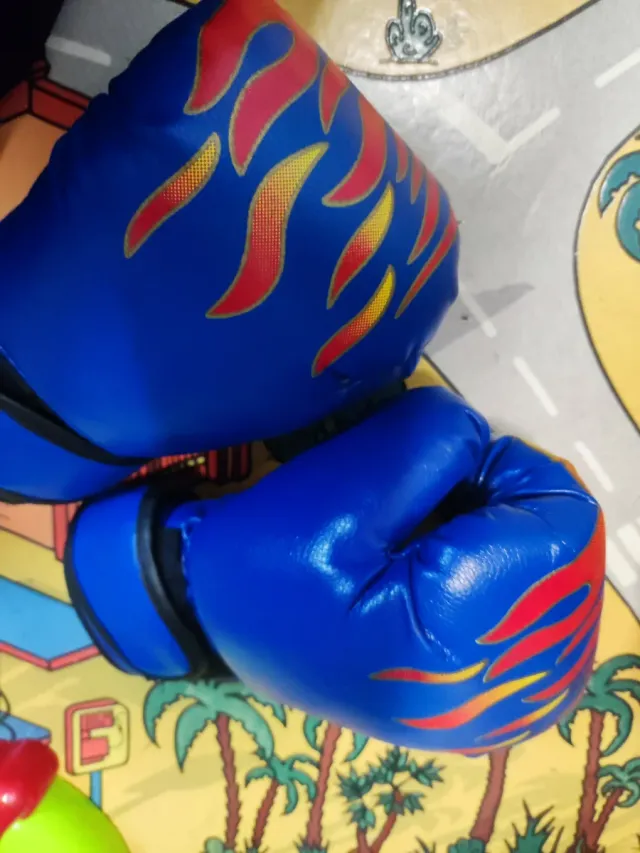 Detalles del productoGuantes de boxeo para niños con un diseño llamativo de llamas rojas y amarillas.