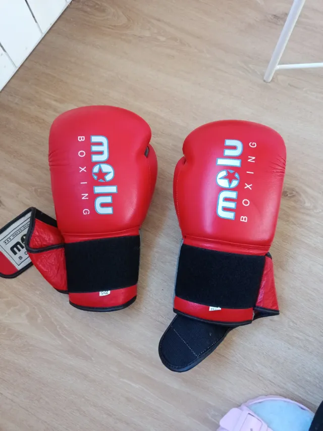 Par de guantes de boxeo de color rojo, marca Molu. - Cierre de velcro. - Diseño para boxeo.
