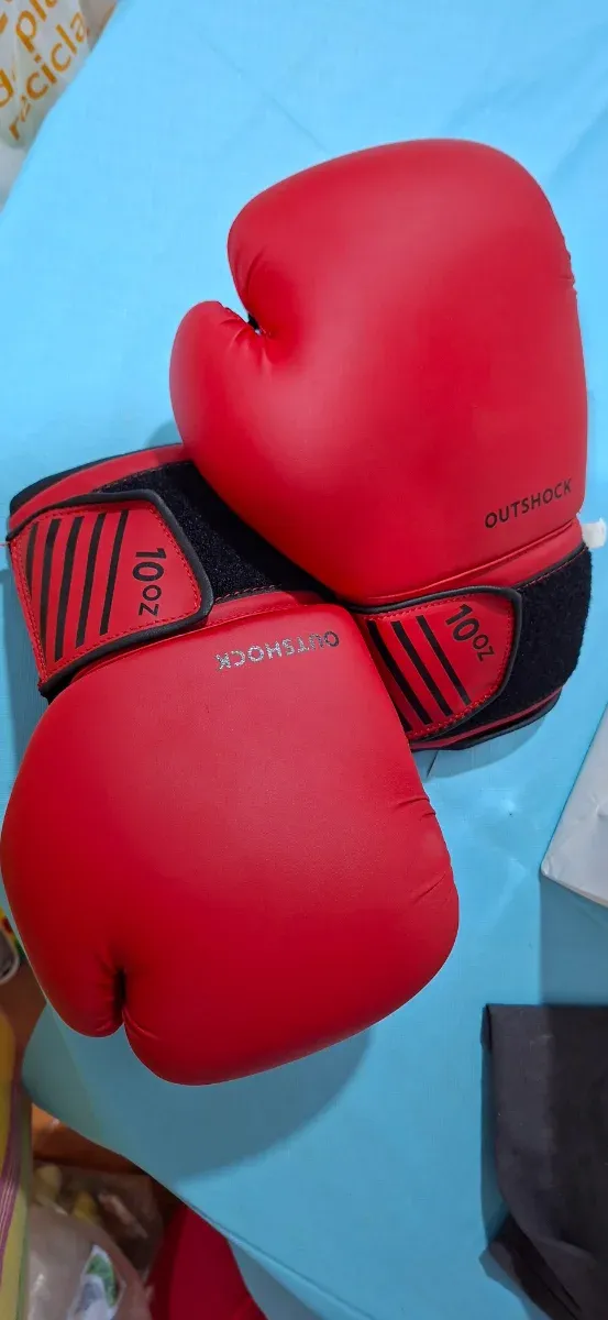 Par de guantes de boxeo de la marca Outshock. - Color rojo. - Tamaño 10 oz. - Cierre de velcro.