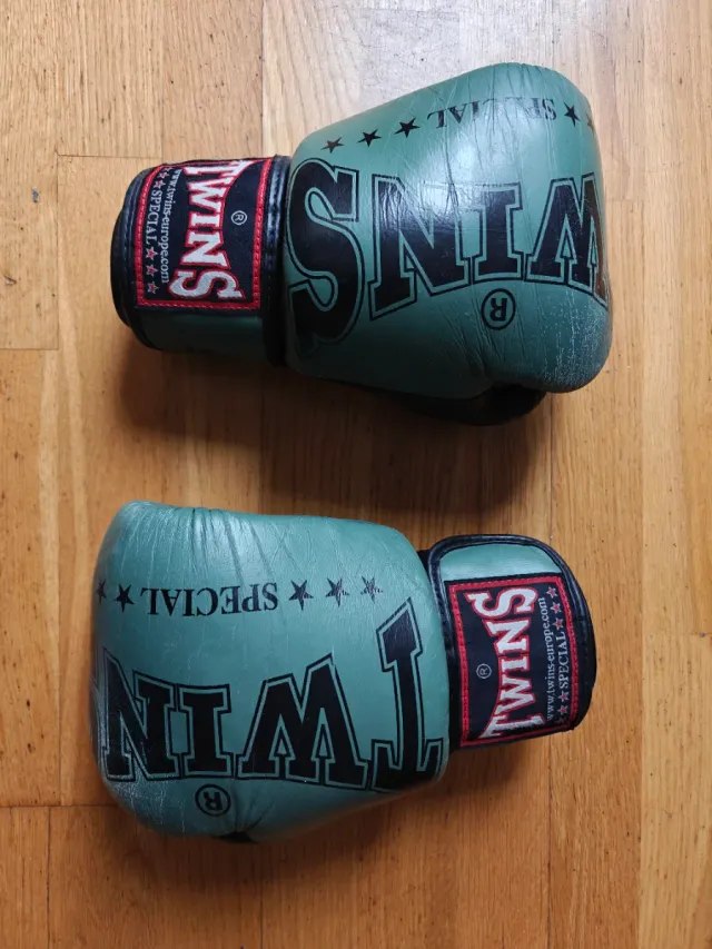 Guantes de boxeo Twins de 14 oz, originales, en color verde. Son ideales para entrenamiento. - Marca: Twins Special. - Color: Verde. - Peso: 14 oz.
