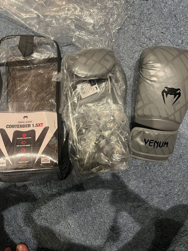 Guantes de boxeo Venum Contender 1.5XT en color gris. talla: 14oz - Incluyen bolsa de transporte. - Diseño con logo Venum. - Cierre de velcro.