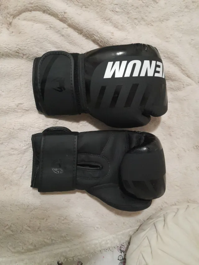 Par de guantes de boxeo de la marca Venum en color negro. - Cierre de velcro. - Diseño con logo de la marca.