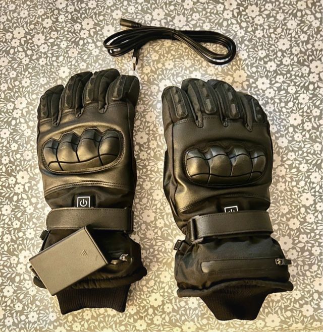 Detalles del productoGuantes de moto negros con sistema de calefacción.