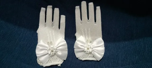 Guantes de niña blancos con lazo