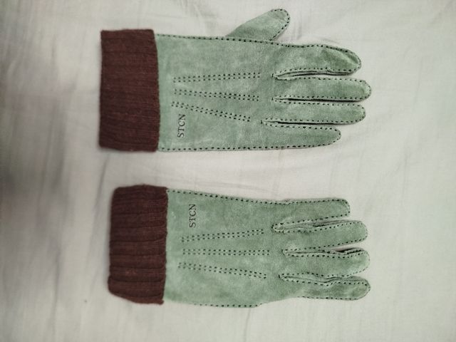 Guantes de piel verde con puño marrón