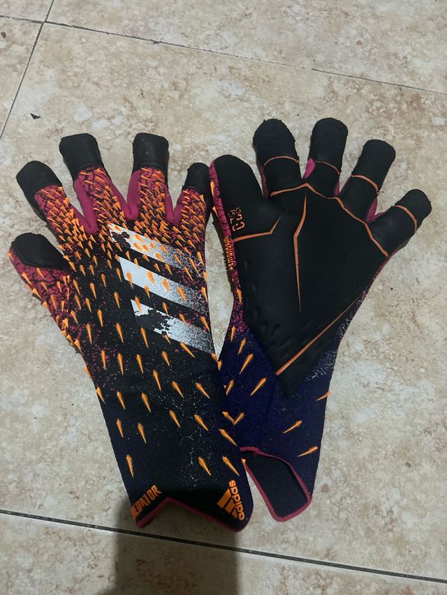 Guantes de portero Adidas Predator con algunos éntrenos de uso, se puede ver en las fotos el desgaste que tienen. Talla 10