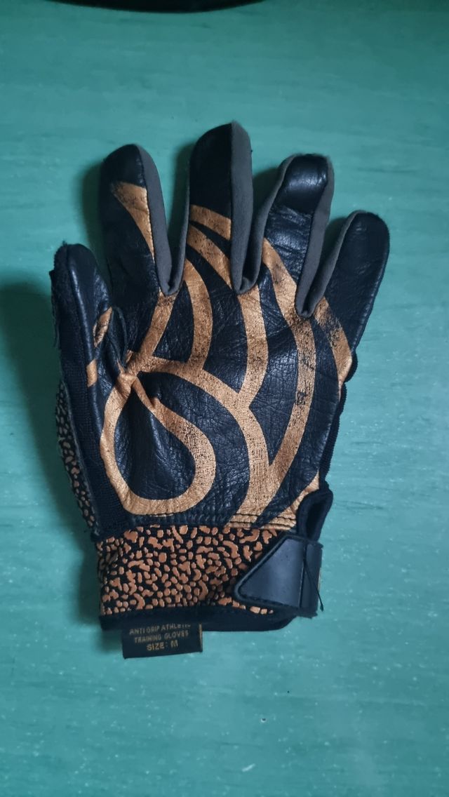 Detalles del productoGuantes de entrenamiento Powerhandz, talla M. Están en muy buen estado, con un diseño elegante en negro y dorado.