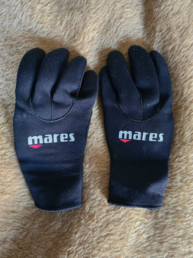 Guantes de neopreno Mares Flexa en talla M. - Color negro. - Logo de Mares en color gris y rojo.