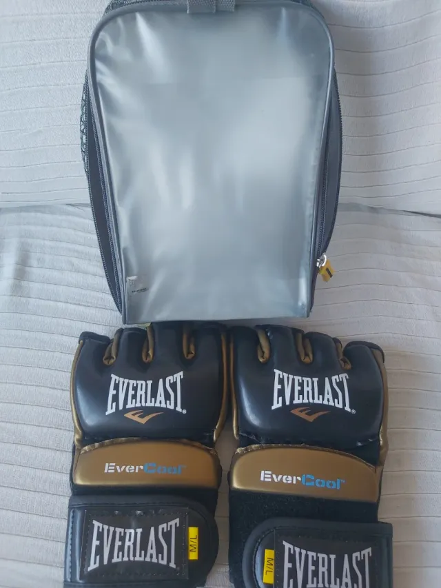 Detalles del productoSet de guantes de artes marciales mixtas Everlast y neceser.