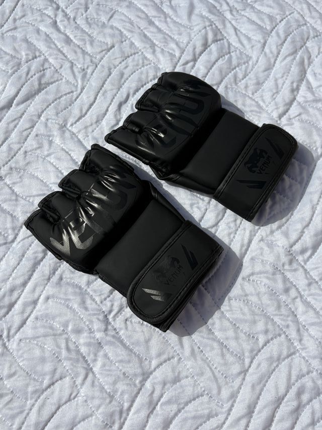 Guantes de MMA Venum en color negro. - Diseño sin dedos para mayor agarre. - Cierre de velcro ajustable en la muñeca.