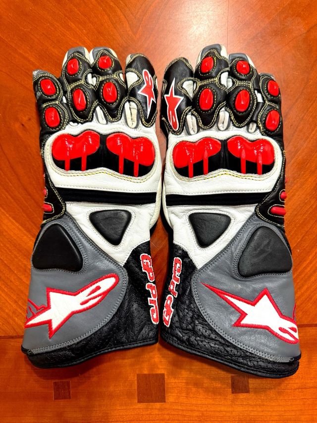 Tope de gama de alpinestar. Indicados para circuito y racing. Construidos con materiales premium. En su día costaron más de 200. Se han usado poco. Los dedos lucen algo usados debido al color blanco pero no se han usado más de dos o tres veces. No tienen absolutamente ningún roto.