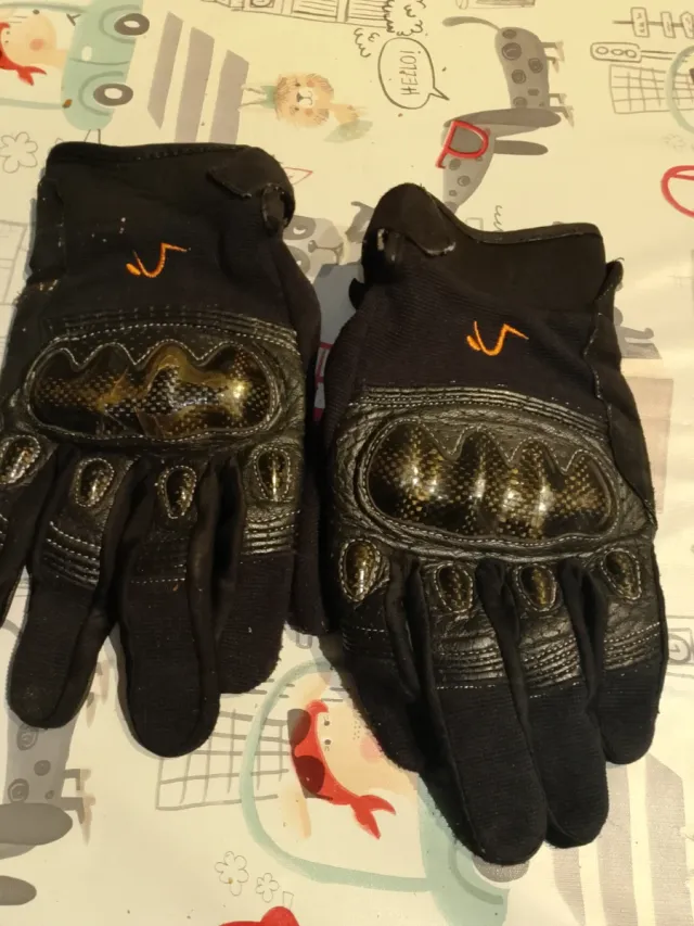 Detalles del productoPar de guantes de moto en color negro con detalles en carbono.