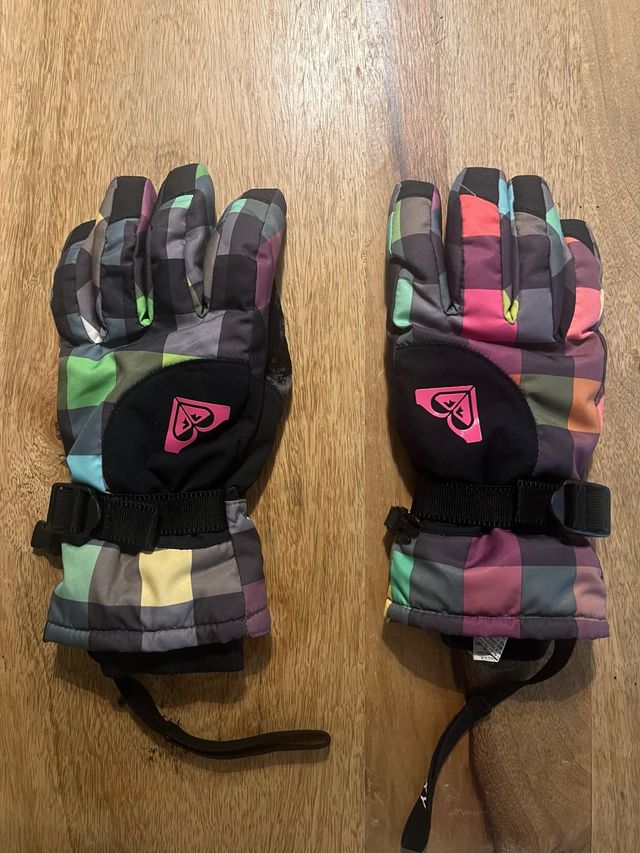 Detalles del productoGuantes de nieve para mujer de la marca Roxy con un diseño a cuadros multicolor. Cuentan con cierre de velcro en la muñeca y correa de seguridad.