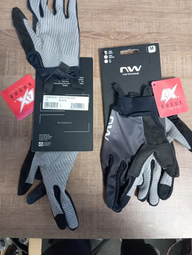 Guantes de la marca Northwave, modelo AIR LF. - Color negro y gris. - Talla M y L disponibles. - Diseño con detalles de rayas plateadas.