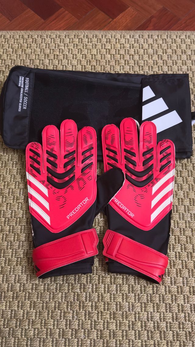 Guantes de portero Adidas Predator en color rojo y negro. - Diseño Predator. - Tiras blancas. - Incluye bolsa de transporte. -Talla 7,5