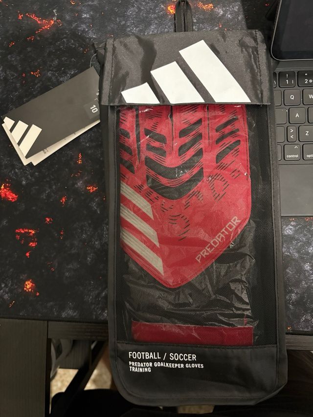 Guantes de portero Adidas Predator. - Talla 10. - Diseño en color rojo y blanco. - Incluyen bolsa de transporte con logo Adidas. precio negociable