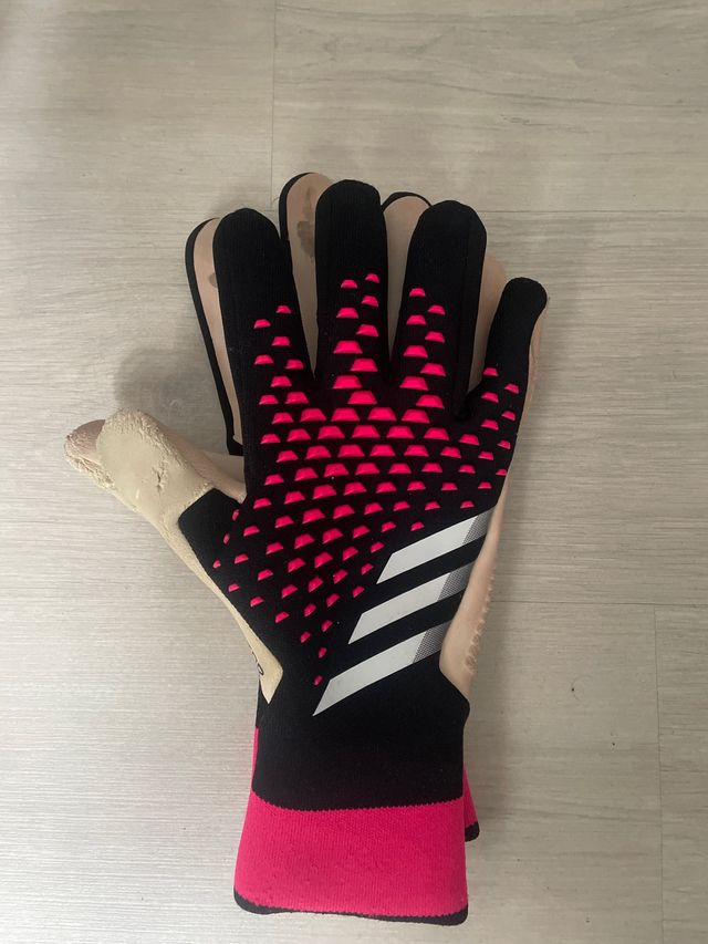Guantes de portero Adidas Predator en talla 9. - Diseño en color negro con detalles en rosa y blanco. - Talla 9.