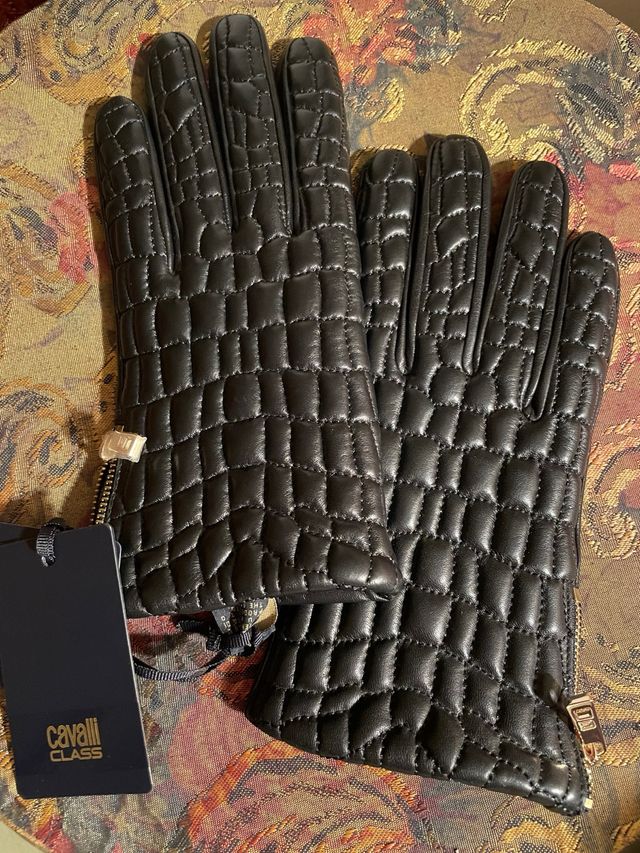 Guantes Roberto Cavalli Negros Piel Cocodrilo